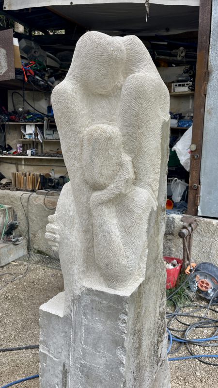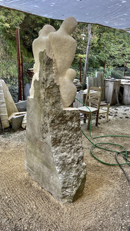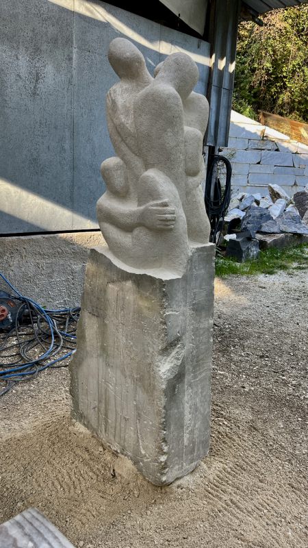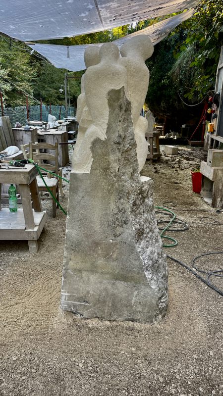 hier gab es schon lange einen stein aus muschelkalk aus vicenza, in der nähe von venedig. raven hat ihn heute aufgestellt, er ist 1,80 m gross. morgen, am 19. september geht es los.