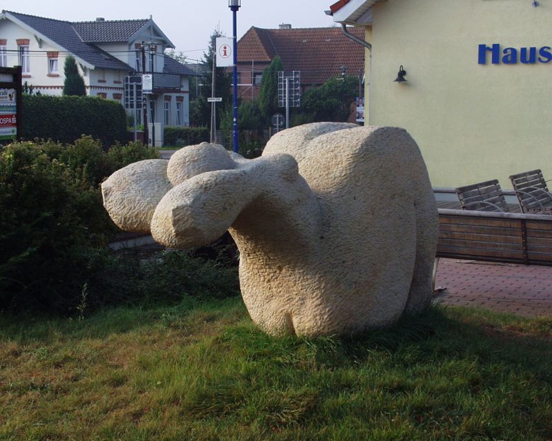 die "grosse ruhende" soll ein willkommen für alle gäste des ostseebades sein, der sandstein selbst war vor jahrmillionen ein strand...